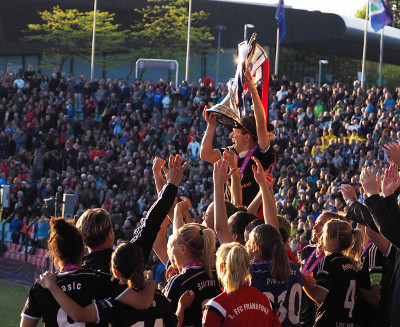 Das Frankfurter Team um Célia Šašić, Kerstin Garefrekes und Simone Laudehr schlug im Champions League-Finale Paris Saint-Germain mit 2:1 und gewann zum vierten Mal den Titel als beste Vereinsmannschaft Europas.