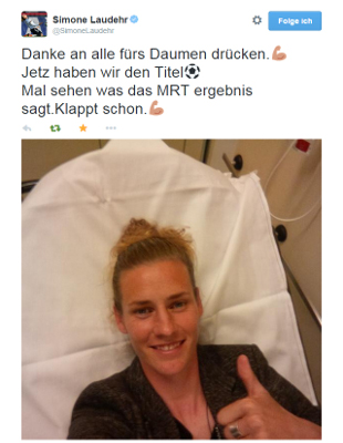 Doch es gab auch Tränen, nicht nur bei den Spielerinnen von PSG: Simone Laudehr verletzte sich kurz vor Ende der Partie in einem Zweikampf mit Annike Krahn, erlitt aber zum Glück nur eine Außenbandzerrung. Den Auftakt des WM-Trainingslagers ab Montag wird sie daher verpassen, bis Turnierbeginn könnte ihre Verletzung aber ausgeheilt sein - wir drücken die Daumen! Eine erfahrene Nationalspielerin wird aber auf jeden Fall in Kanada fehlen: Heute gab der DFB bekannt, dass Lira Alushi die WM-Teilnahme abgesagt hat, weil sie ein Baby erwartet.