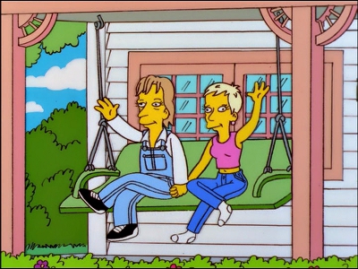 Ellen DeGeneres ist in den USA eine der bedeutendsten offen lesbischen Persönlichkeiten, die sich in ihrer eigenen Sitcom Ellen 1997 als lesbisch outete. Zu diesem Zeitpunkt war sie mit der Schauspielerin Anne Heche liiert. In einer Folge von 1999 kommen die Simpsons an dem Haus von Ellen DeGeneres und Anne Heche vorbei. Beide Frauen sitzen vor ihrem Haus, halten Händchen und rufen gemeinsam: Wir sind lesbisch!. Das wirkt banal, ist jedoch vor dem Hintergrund ihres bedeutenden Coming-outs von 1997 als Rückenstärkung in einem emanzipatorischen Sinn zu beurteilen.