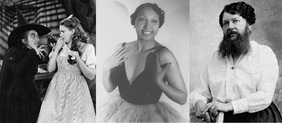 Margaret Hamilton mit Judy Garland in "The Wizard of Oz", Josephine Baker, Clémentine Delait (v.l.n.r.)Im Vergleich zu den Männern erreichen also Künstlerinnen, Sportlerinnen oder Wissenschaftlerinnen aller Zeiten eine eher spärliche Öffentlichkeit. Dem wollen schon seit Jahren Anthologien wie „Berühmteste Frauen der Weltgeschichte“, „Starke Frauen und ihre Katzen“, „Frauen, die denken, sind gefährlich“, „Eigensinnige Frauen“ oder auch „100 Frauen, die die Welt verändert haben“ entgegenwirken.