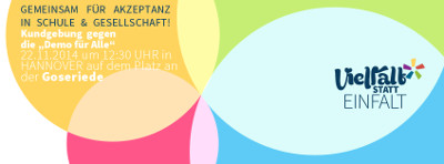 Heute in Hannover: Demo "Vielfalt statt Einfalt" gegen selbsternannte "Familienschützer"